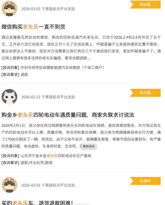 老头乐遭大量消费者投诉