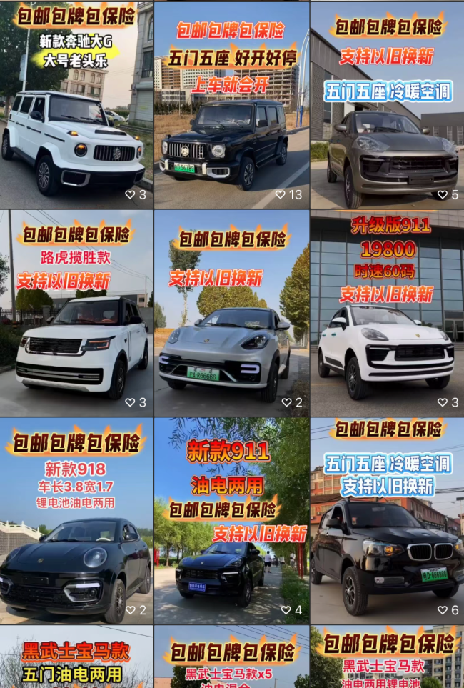 “宝驴、奔驰小G、劳斯莱斯兜里难、宾利添乱……”近年来,这些带着戏谑命名的老头乐,正越来越多地出现在农村街头。它们披着山寨豪车的外衣,价格却连真车的零头都不到。