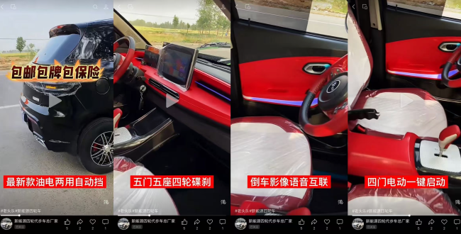 值得注意的是,在暗访过程中,并非所有商家都刻意隐瞒。也有商家在售卖时提示,这种是低速电动四轮车,上不了牌,具体要看当地管理严不严。“不严就没事,了解清楚了再买。”对方坦言,所谓的“牌”就是老头乐牌,并非正式牌照。