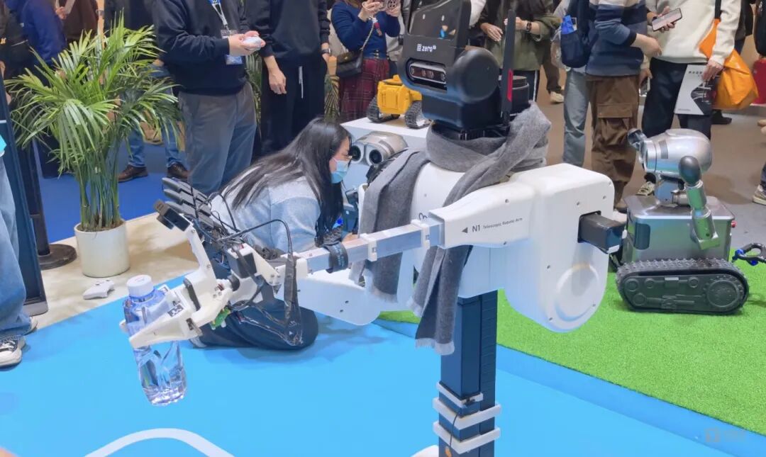 前追觅中国区执行总裁郭人杰创立的乐享科技,带来了旗下品牌ZEROTH元点智能的家庭场景机器人产品——全新协作机器人N1(小恩),采用异构机械臂组结构,左手为伸缩结构,主要用于夹取等常规任务,右臂为灵巧臂,搭配三指夹爪,可实现握、抓、夹捏等精细化操作。